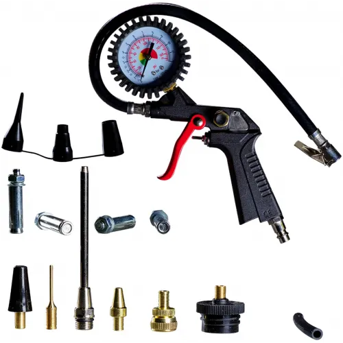 | Комплектация | Пневмопистолет с манометром для накачки; Удлиненная насадка для продувки; Игла для накачки мячей; Универсальный адаптер для клапанов с внутренним диаметром 6 мм ; Универсальный адаптер для клапанов с внутренним диаметром 9 мм; Адаптер для накачки велосипедных шин; Насадки для накачки матрасов и басс |