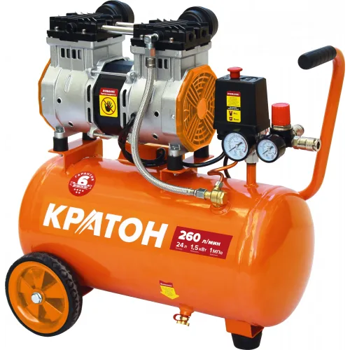 Компрессор поршневой Кратон AC-260-24-OFHS безмасляный 260л/мин 24л 1500Вт оранжевый