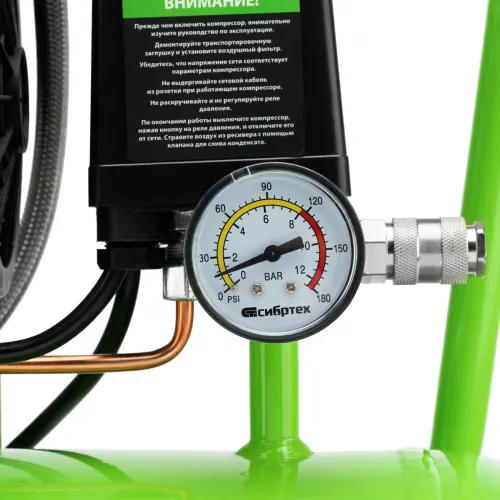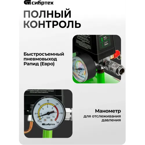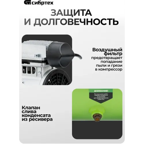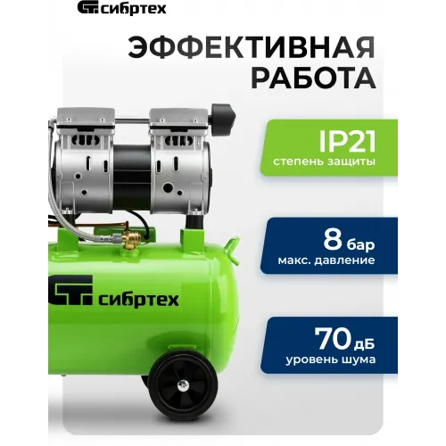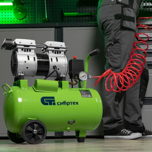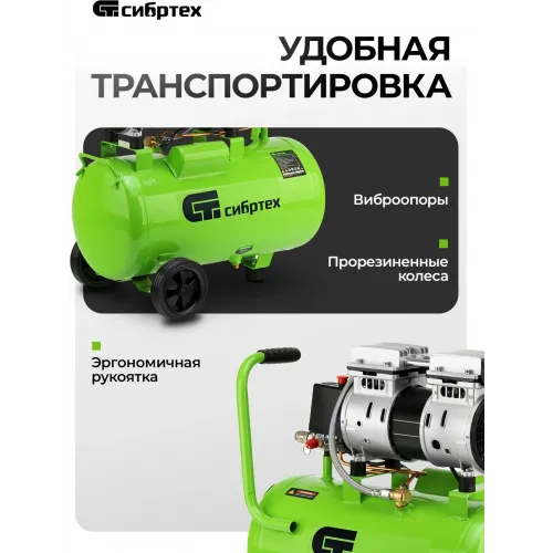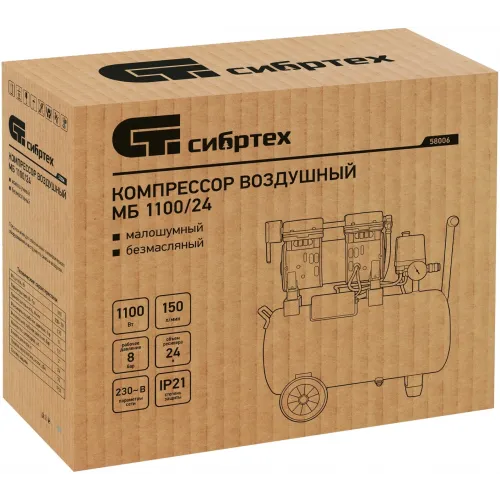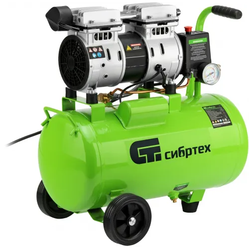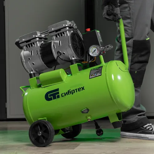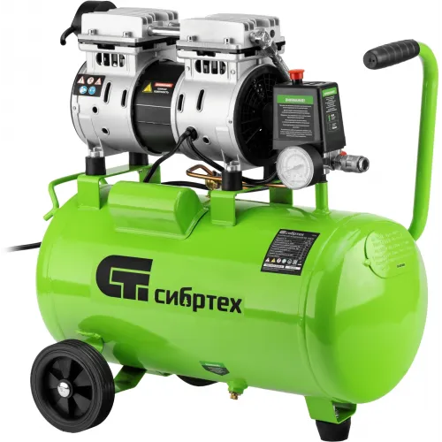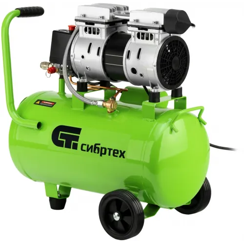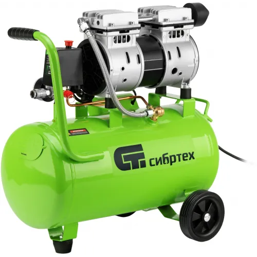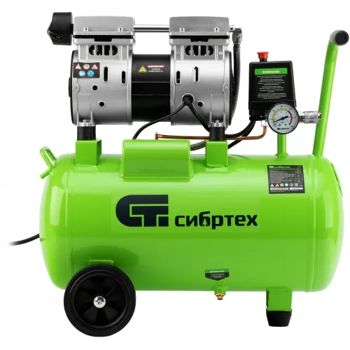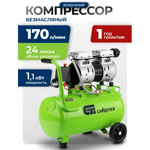 Компрессор поршневой Сибртех МБ 1100/24 безмасляный 170л/мин 24л 1100Вт зеленый