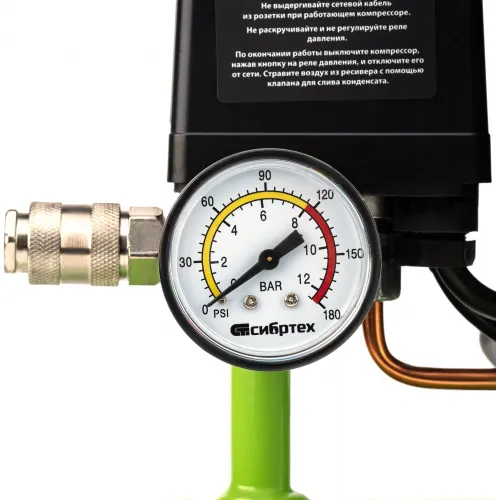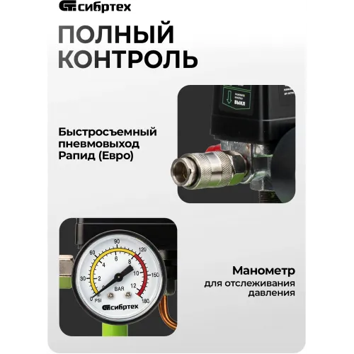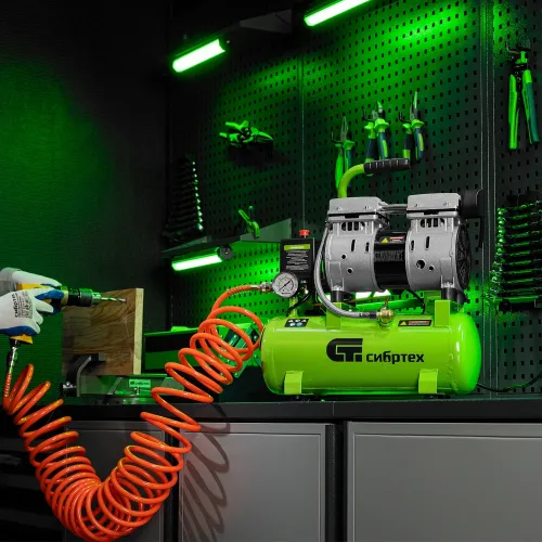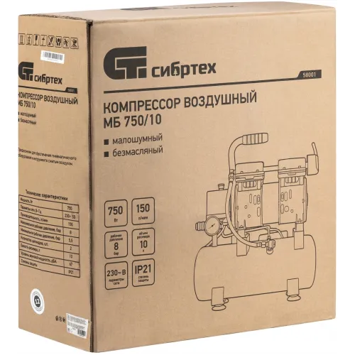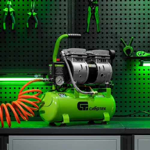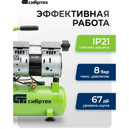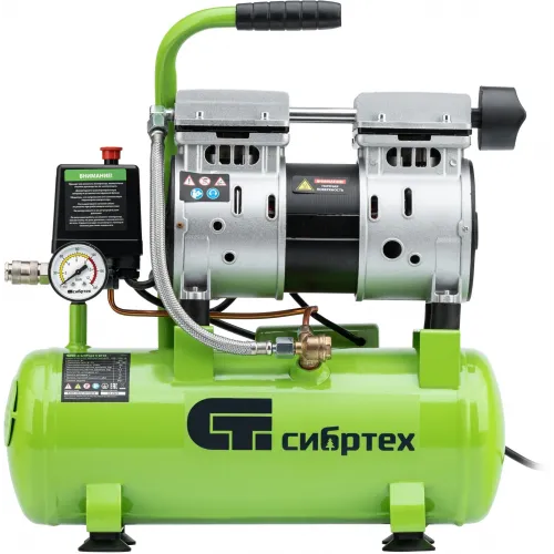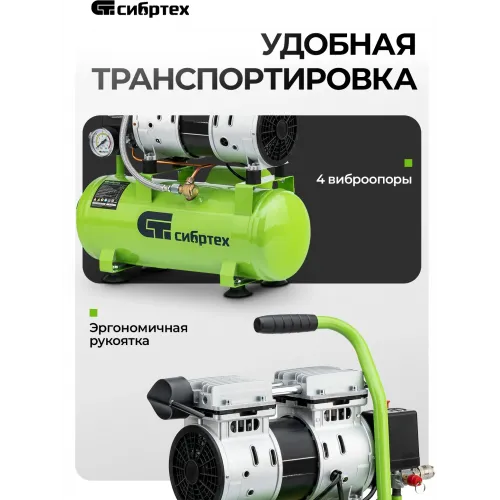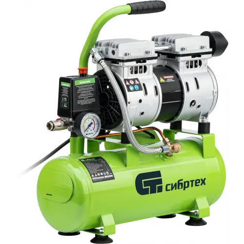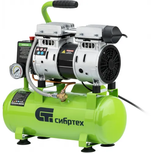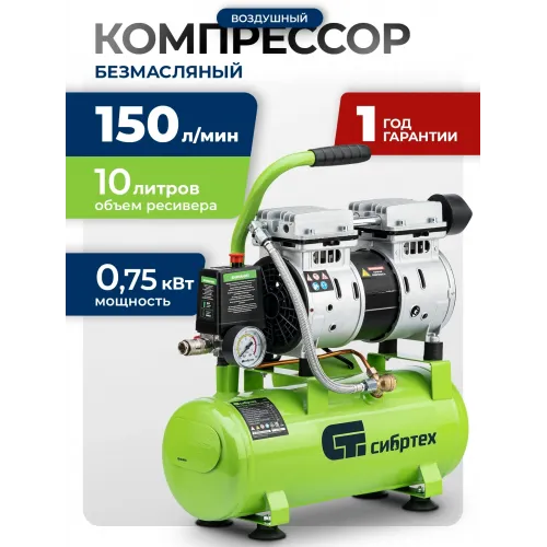Компрессор поршневой Сибртех МБ 750/10 безмасляный 150л/мин 10л 750Вт зеленый