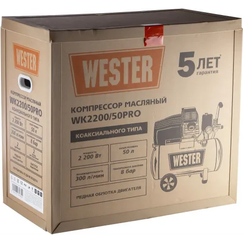 Компрессор поршневой Wester WK2200/50PRO масляный 330л/мин 50л 2200Вт черный
