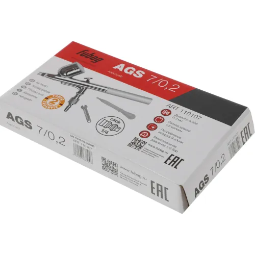 | Описание | Аэрограф Fubag AGS7/0.2 с удобной ручкой. Сопло маленького диаметра (0,2 мм.) отлично подходит для тончайшего нанесения краски и рисования мелких элементов. Высокочувствительный регулятор подачи воздуха и краски. |