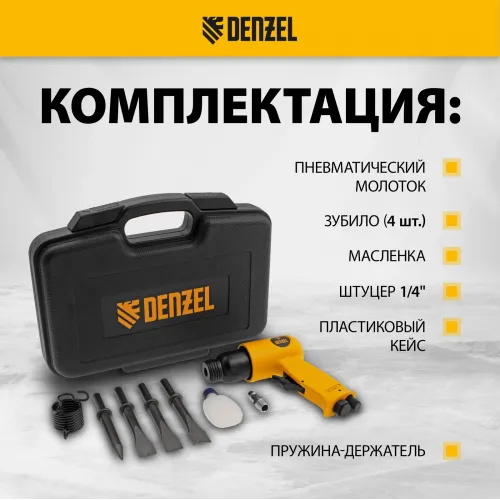 | Комплектация | Молоток, штуцер, кейс, зубило - 4 шт., масленка, пружина-держатель. |