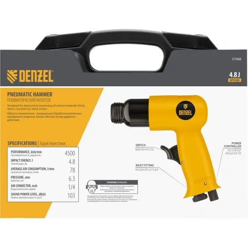 Пистолет гвоздезабивной Denzel НР4500 113л/мин желтый/черный