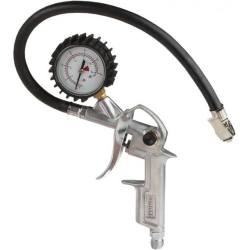 | Особенности | Оснащен манометром и вентилем. Подключаются к пневмосети или компрессору через резьбовое соединение 1/4”. Корпус из прочного алюминиевого сплава. Длина шланга 400 мм. |