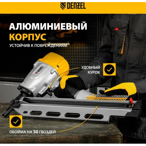 Пистолет гвоздезабивной Denzel PN2190 серый/желтый