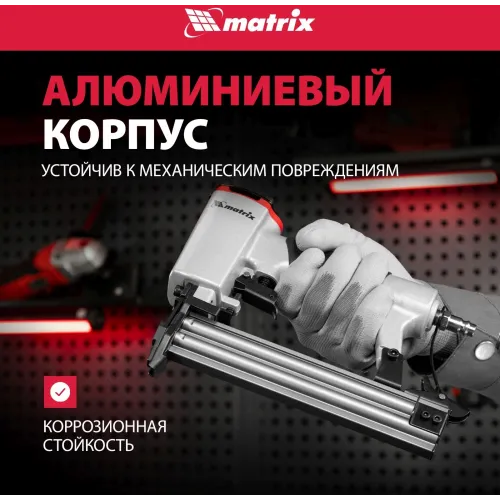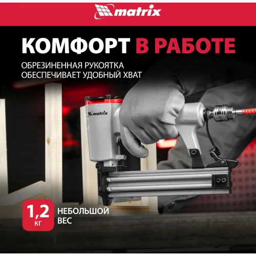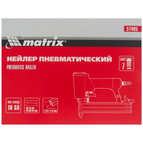 | Особенности | Пневматический нейлер Matrix предназначен для гвоздей 18GA от 10 до 32 мм. |
