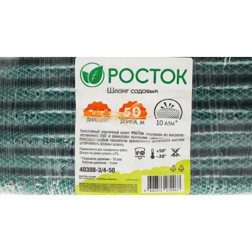 Шланг Росток 40308-3/4-50 3/4" 50м поливочный армированный зеленый