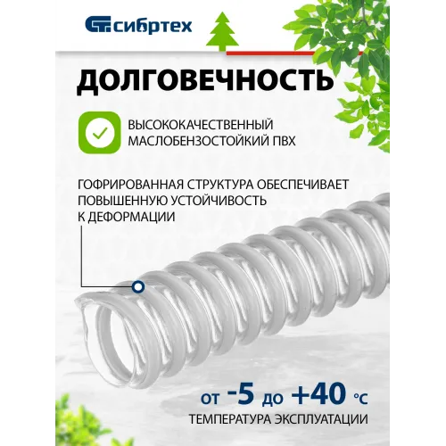 Шланг Сибртех 67310 30м спиральный армированный белый