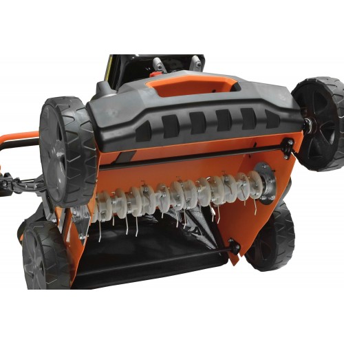 | Особенности | Бесступенчатая регулировка глубины обработки. Прочная стальная дека. Мощный производительный двигатель 7 л.с. Сменные валы для выполнения различных задач (аэрация и скарификация). |
