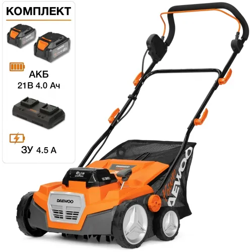 | Комплектация | Аккумуляторная батарея 21В - 2шт Зарядное устройство Вал 36 ножей Аэратор Гарантийный талон Инструкция |