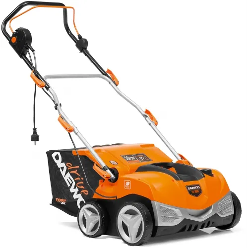 | Особенности | Электрический Двигатель DAEWOO, работа в 3-х режимах: аэратор, скарификатор и травосборник, 2 вала в комплекте (игольчатый и с 16 ножами), центральная регулировка глубины обработки, прочный корпус из пластика, мкий травосборник в комплекте , 3-х летняя гарантия DAEWOO |