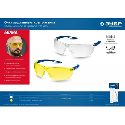 Очки защитные Зубр БОЛИД 40гр (110485)
