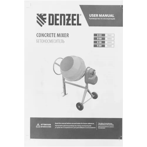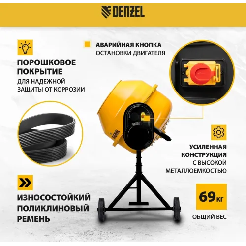Бетономешалка Denzel B-200 электрич. бар.:200л г.р.:110л 1000Вт (95424)