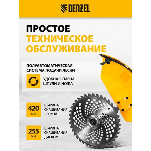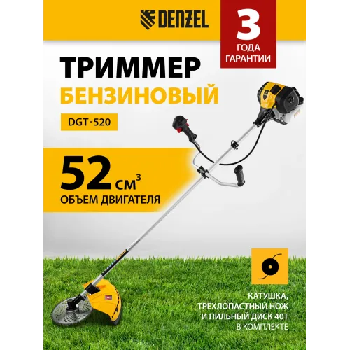 Триммер бензиновый Denzel DGT-520 2200Вт 3л.с. неразбор.штан. реж.эл.:леска/нож
