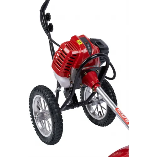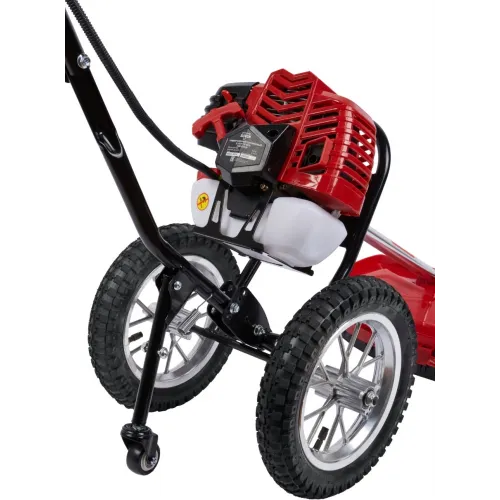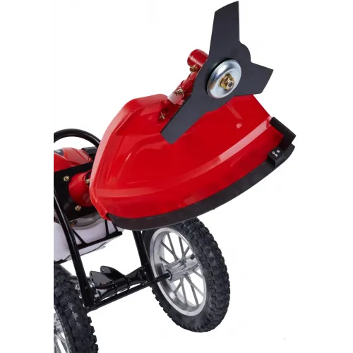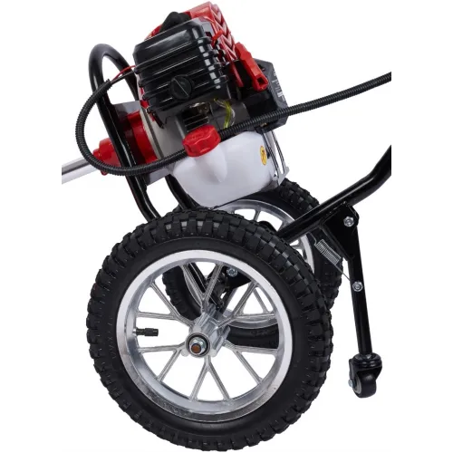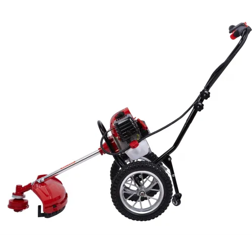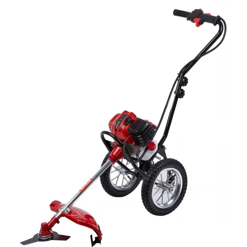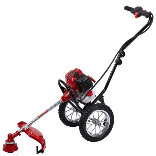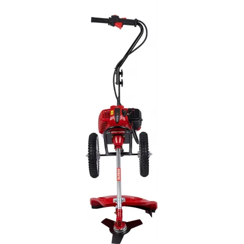 Комплект поставки | Основной блок - 1 шт. Ручка - 1 шт. Триммерная головка - 1 шт. Нож трехлопастной - 1 шт. Защитный кожух - 1 шт. Крепление кожуха - 1 шт. Нож для обрезки лески (корда) - 1 шт. Колеса - 2 шт. Ось с креплением - 1 шт. Набор инструментов - 1 шт. |