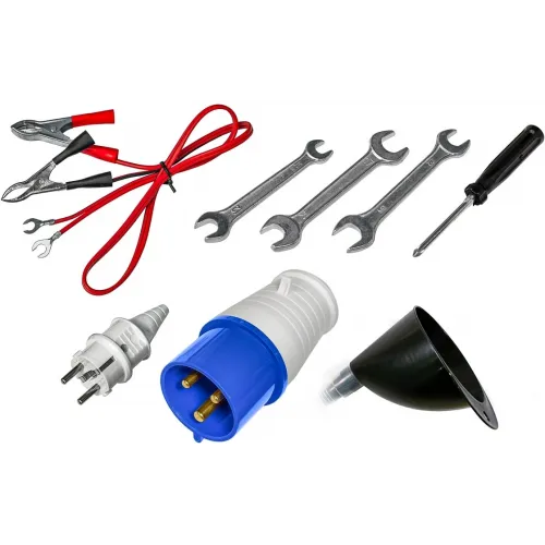 | Комплектация | Генератор; АКБ; вилка, для подключения общей нагрузки, 2 шт.; набор проводов для встроенного зарядного устройства; колёсный комплект; лейка; отвёртка; ключи; руководство по эксплуатации; гарантийный талон производителя. |