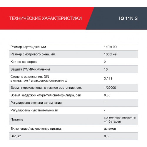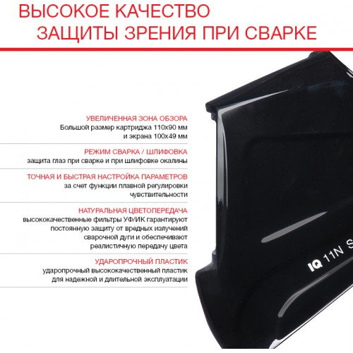 Маска сварщика Fubag IQ 11N S филь.:хамел. кл.:1/1/1/1 см.экр.100x49мм черный (992550)