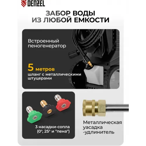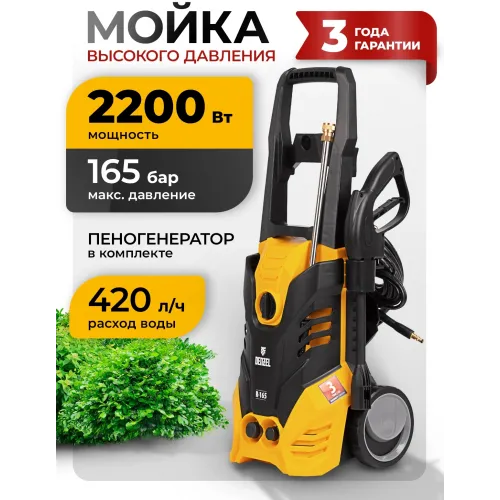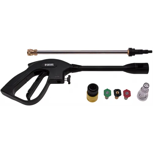 Комплектация | мойка, ручка, шланг высокого давления, пистолет моечный, стальная насадка-удлинитель, 3 насадки-сопла (0°, 25° и "пена"), входной штуцер с фильтром, быстросъемный адаптер для входного шланга, держатель пистолета, игла для прочистки сопла, руководство по эксплуатации, гарантийный талон. |