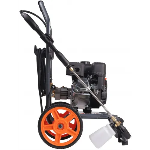 | Особенности | Самовсасывающая помпа из латуни; двигатель с защитой от низкого уровня масла; мощный бензиновый двигатель; полная комплектация; транспортировочная тележка и колеса увеличенного диаметра облегчают перемещение мойки по территории стройки или предприятия |