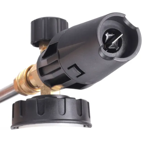 | Дополнительные трубки (насадки в комплекте) | Пистолет; Шланг 8м; Пеногенератор; Всасывающий шланг с коннектором; Сменные форсунки 0°,25°,40°; Форсунка для пеногенератора |