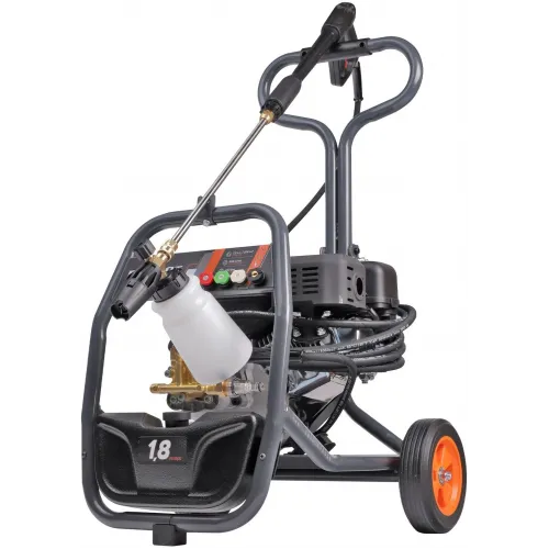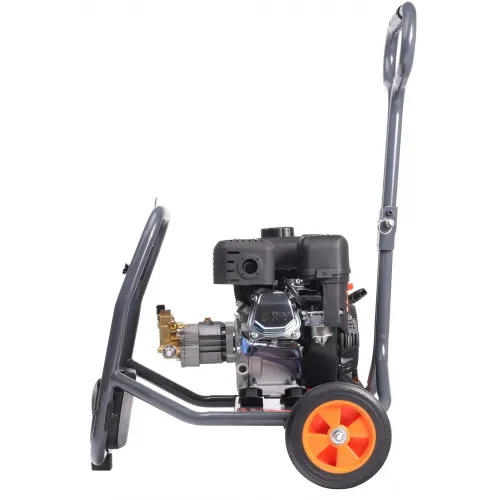 | Особенности | Самовсасывающая помпа из латуни; двигатель с защитой от низкого уровня масла; мощный бензиновый двигатель; полная комплектация; Транспортировочная тележка облегчает перемещение мойки по территории, а усиленная рама защищает конструкцию от возможных повреждений на стройке. |