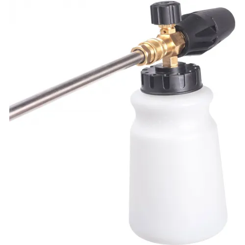 | Дополнительные трубки (насадки в комплекте) | Пистолет; Шланг 8м; Пеногенератор; Всасывающий шланг с коннектором; Сменные форсунки 0°,25°,40°; Форсунка для пеногенератора |