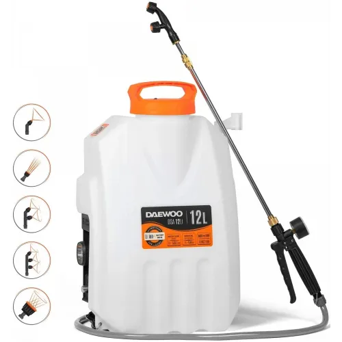 | Особенности | Аккумуляторный опрыскиватель DAEWOO DSA 12Li SET – незаменимый помощник на садовом участке, фермерском и парковом хозяйстве. Используется для полива и обработки растений удобрениями и пестицидами. В комплект входят 5 распыляющих насадок. Ремень для ношения облегчает работу, делая её комфортной. |
