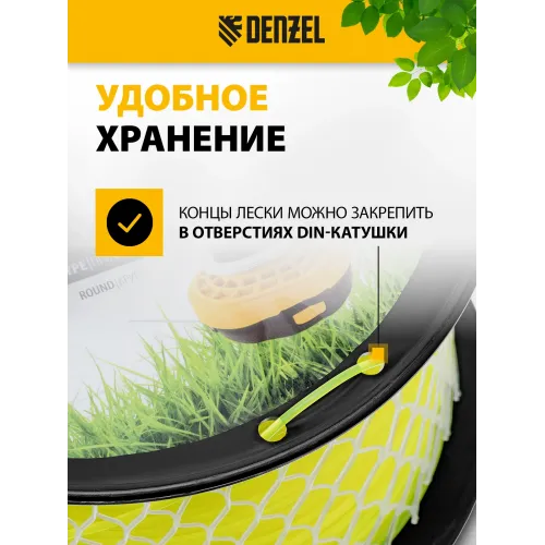 | Описание | Леска для триммера 2,4 м Denzel арт 96280 FLEX CORD предназначена для скашивания как мягкой, молодой травы, так и для более густой растительности. |