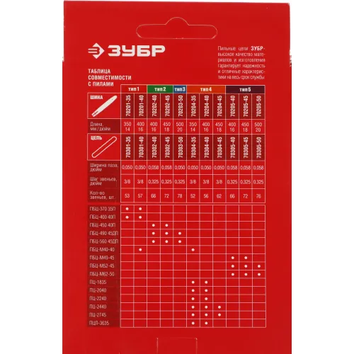 Цепь для цепных пил Зубр 70305-45 0.325" 72звен. для ПБЦ-М49-45/М52-45/М62-50