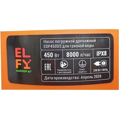 Насос дренажный Elfy EDP450DS 450Вт 8000л/час центробежный (100064192437)