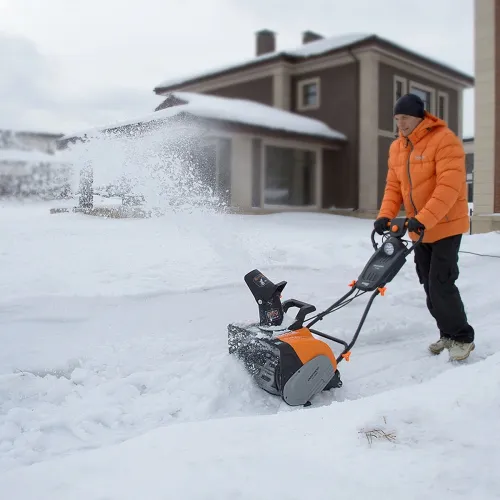 | Особенности | Мощный электрический двигатель DAEWOO. Резино-металлические шнеки. Система привода GRAB and GO. Ударопрочный корпус ABS. Контроль присутствия оператора. |