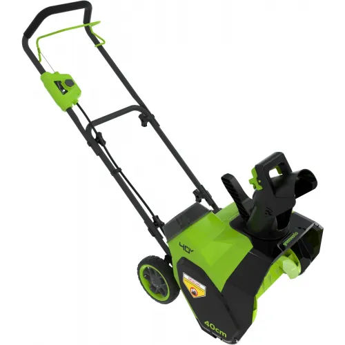 | Комплектация | Снегоуборщик аккумуляторный Greenworks G40ST40, 40V, 40 см, арт. 2603607UB Аккумулятор 40V, 4 Ач Зарядное устройство 40V, 2А Руководство по эксплуатации Гарантийный талон |