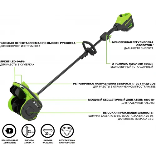 Снегоуборщик электр. Greenworks GD60SS2 1.8кВт
