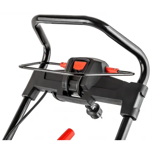 Особенности | Снегоуборщик перемещается на двух колёсах. Не нужно держать его на весу во время уборки снега. Регулировка угла выброса снега. Направление выброса регулируется в пределах 190°. Для настройки просто поверните рукоятку; Обрезиненный шнек. Обрезиненный шнек не царапает очищаемую поверхность. |