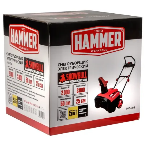 Снегоуборщик электр. Hammer SNOWBULL2000E 2кВт 2.7л.с.