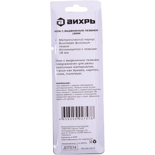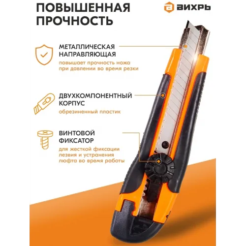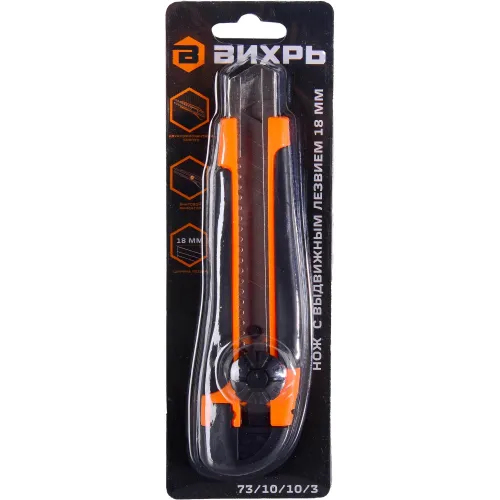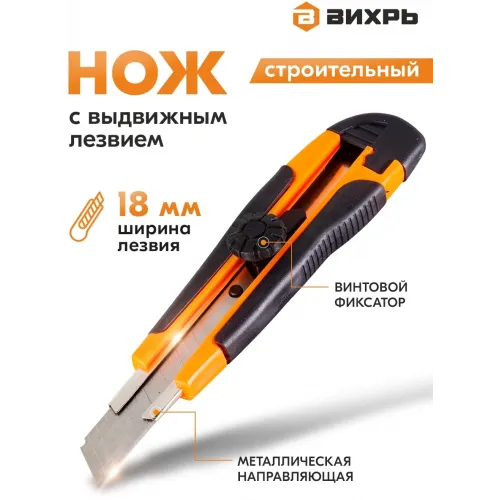 Нож строит. Вихрь 18мм лезв.1шт оранжевый/черный (73/10/10/3)