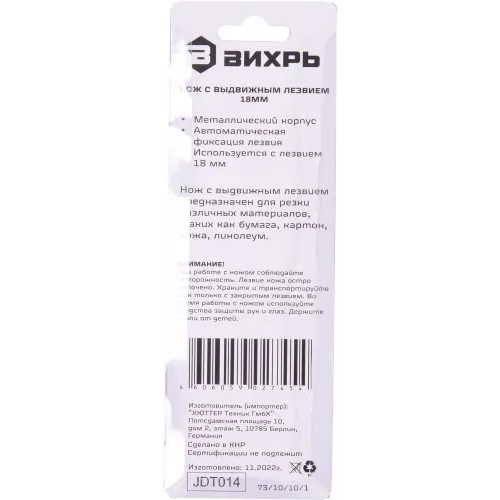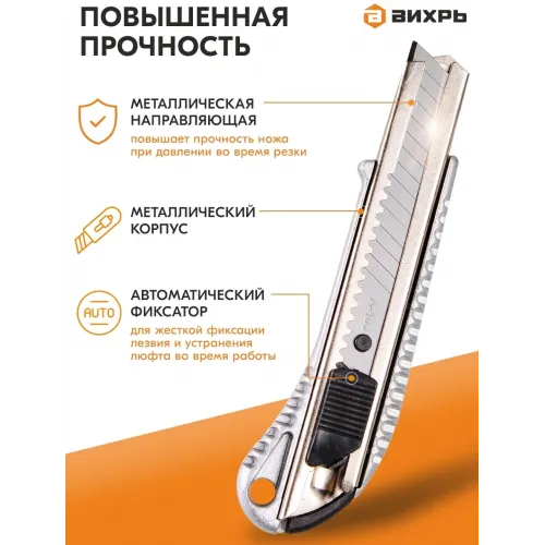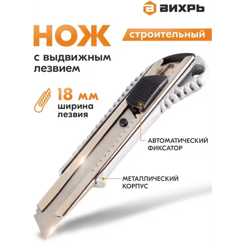 Нож строит. Вихрь 18мм лезв.1шт серый/черный (73/10/10/1)