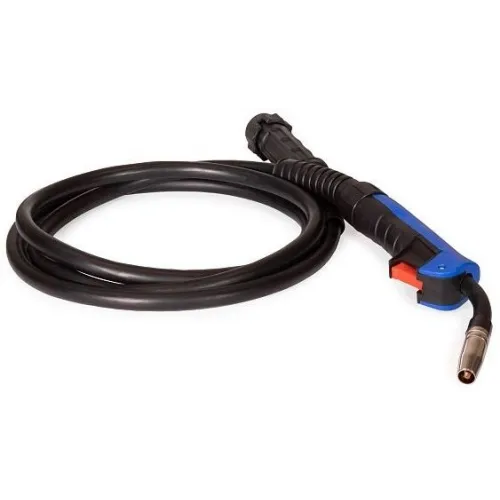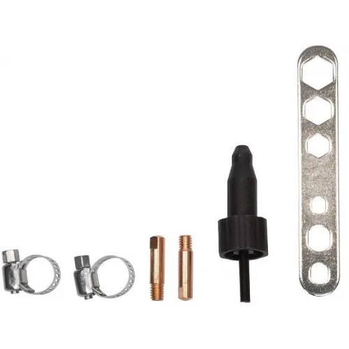 | Комплектация | Штуцер для подключения защитного газа - 8мм Горелка для полуавтоматической сварки MIG 15 - 3м Обратный 25мм2 кабель с зажимом массы - 2.5м Кабель 25мм2 с держателем электрода - 2.5м Ролик подачи с V-образной канавкой для работы со стальной проволокой 0.6-0.8 мм. |