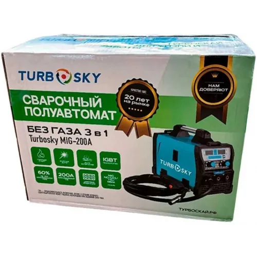 Сварочный полуавтомат Turbosky MIG-200А без газа 3 в 1 инвертор MIG-MAG/ММА/TIG 7.0кВт