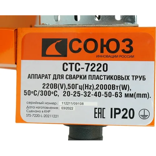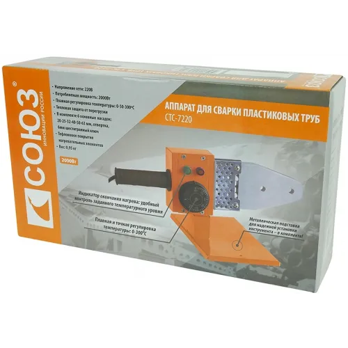 Сварочный аппарат для пластиковых труб Союз СТС-7220 2кВт Тмакс.:300 парн.насад. 6насад. (кейс в компл.)