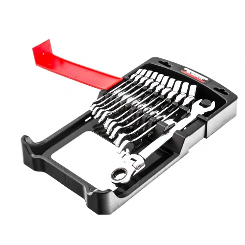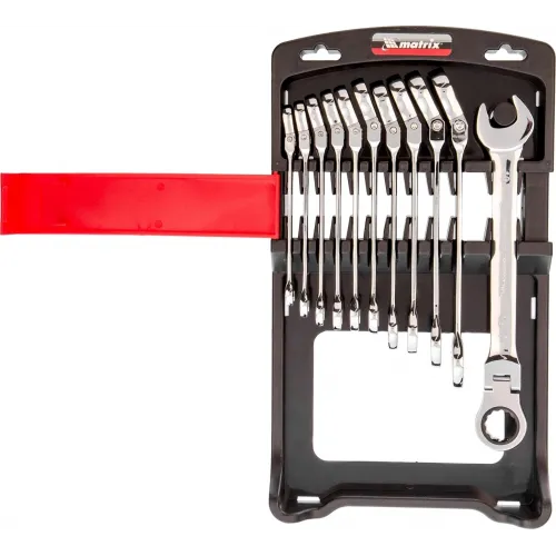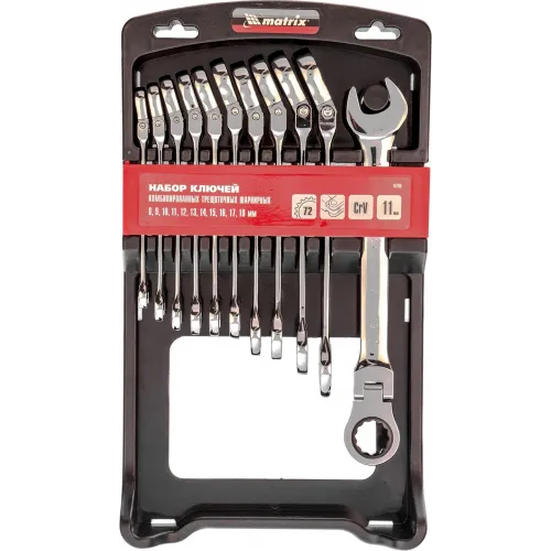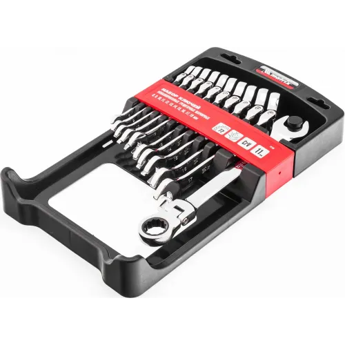 | Описание | Набор ключей комбинированных, трещоточных шарнирных 11 шт. В наборе 11 ключей на 8, 9, 10, 11, 12, 13, 14, 15, 16, 17, 19 мм. с нанесенной на корпус маркировкой типоразмера. |