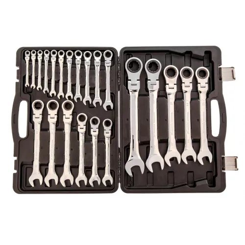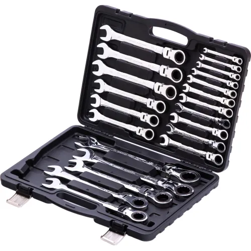Описание | Набор ключей комбинированных, трещоточных шарнирных 22 шт. В наборе 22 ключа на 6, 7, 8, 9, 10, 11, 12, 13, 14, 15, 16, 17, 18, 19, 20, 21, 22, 23, 24, 27, 30, 32 мм. с нанесенной на корпус маркировкой типоразмера. |