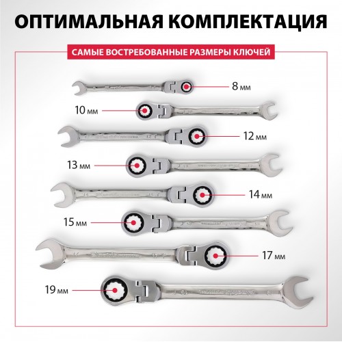 | Размеры ключей в наборе | 10, 12, 13, 14, 15, 17, 19, 8 |