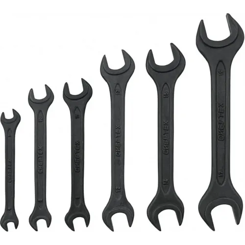 | Описание | Набор фосфатированных рожковых ключей Сибртех 15220, ГОСТ 2839, включает 6 инструментов из стали CrV для монтажа и демонтажа шестигранных резьбовых крепежей диаметром 6-19 мм. Ключи являются двусторонними — на каждом конце у них имеются губки с различным размером зева. |