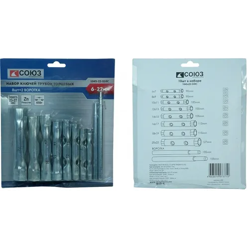 | Торцевые ключи, список | 6х7х90, 8х9х90, 10х11х100, 12х13х105, 14х15х105, 16х17х115, 18х19х115, 20х22х127 |
