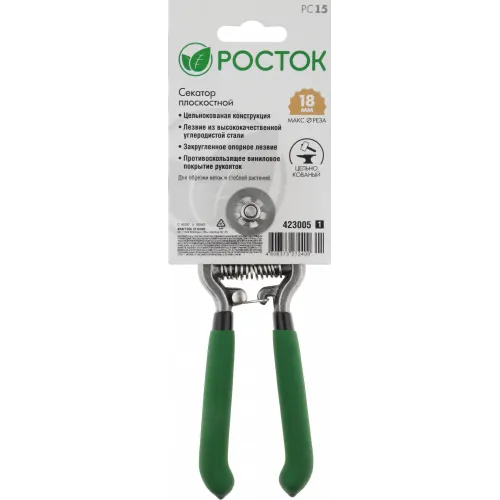 Секатор плоскостной Росток PC-15 малый зеленый/черный (423005_Z01)