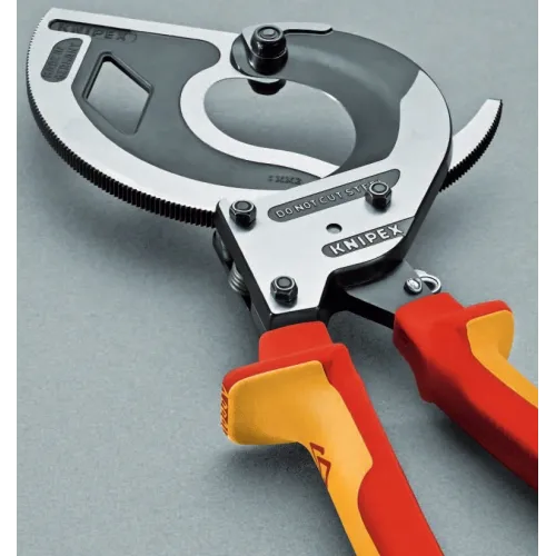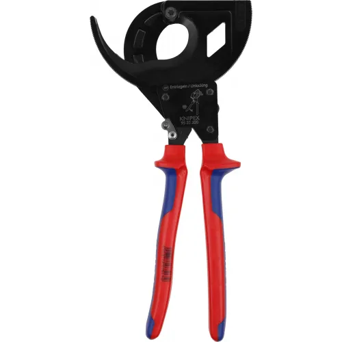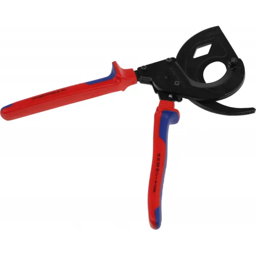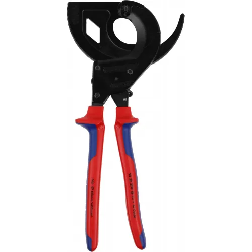 | Описание | Кабелерез с храповым механизмом (трещоткой), трёхходовой зубчатый привод, рез: кабель диаметром до 60 мм. (сечением 600 кв.мм., MCM 1200), чёрный, 2-компонентные рукоятки. |