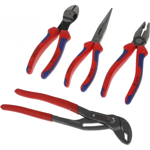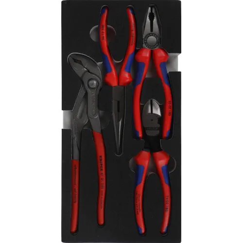 | Описание | Basic набор ШГИ в ложементе, 4 предмета, комплектация: плоскогубцы KN-0302180, длинногубцы KN-2612200, бокорезы KN-7402160, COBRA клещи переставные KN-8701250. |