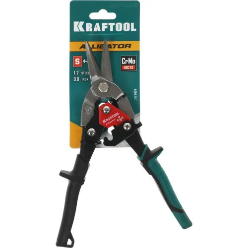 | Описание | Профессиональные ножницы по металлу KRAFTOOL изготовлены из хромомолибденовой стали, обладают высокой твердостью режущих кромок и оснащены мощным рычажным механизмом. Лезвия ножниц закалены токами высокой частоты до твердости 62–65 HRC. Максимальная толщина разрезаемой холоднокатаной стали 1,2 мм. |